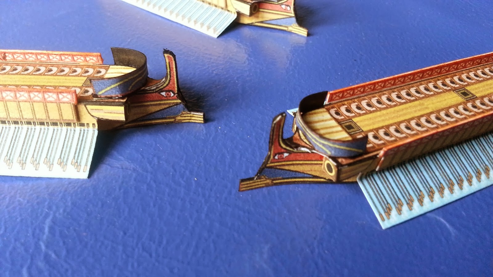 I have made some models with a narrow deck bridge which link the forecastle and the quarter deck. The thranites are visible, toiling over their oars and the helmsman with his tillers. The trierarch's chair is empty as yet.. Their are low rails on the sides.
